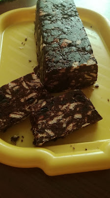 Gotowe ciasto polać czekoladą rozpuszczoną w kąpieli wodnej.